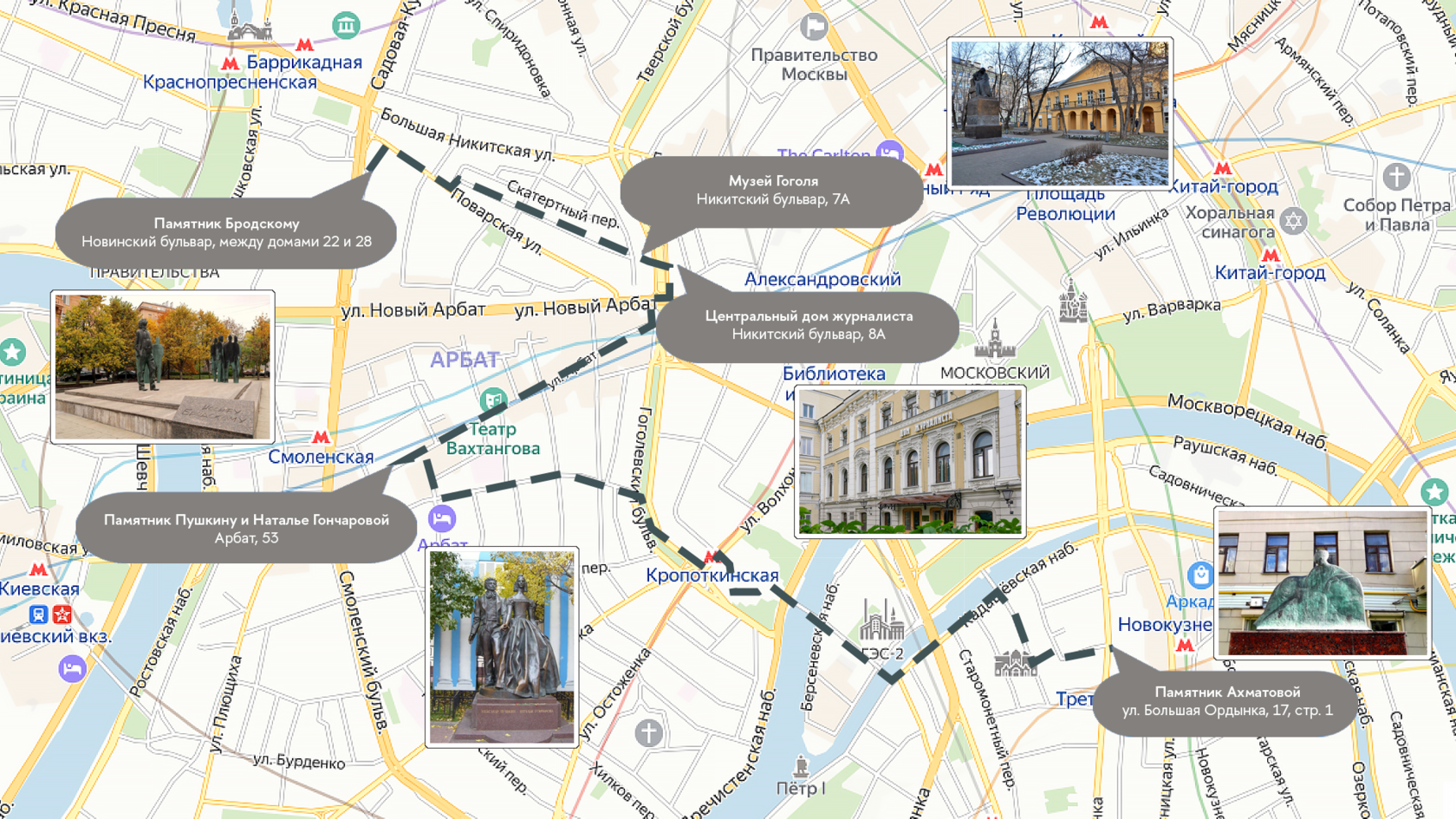 Гоголь приехал жить в дом на Никитском бульваре в 1848 году, по приглашению графа А. П. Толстого и его жены, графини А. Г. Толстой, которые были близкими друзьями Гоголя. В каждой комнате дома есть главный предмет, который становится символической инсталляцией, выражающей акцент комнаты. В прихожей это сундук странствий, в гостиной — камин, в кабинете — конторка, в зале «Ревизор» — кресло, а в комнате памяти — посмертная маска Гоголя. Окружающие предметы мебели и детали интерьера включены в образ на уровне актеров «второго плана». Музейная экспозиция была создана научной концепцией, а художник Л. В. Озерников воплотил ее в жизнь. В музее собраны подлинные исторические предметы и произведения искусства, а также вещи, принадлежавшие Гоголю. В двух комнатах на первом этаже писатель работал над вторым томом «Мертвых душ». 5 ноября 1851 года, налево от входа в зал первого этажа, Гоголь читал комедию «Ревизор» актерам Малого театра, а также сжег часть своих рукописей за 10 дней до своей смерти в этом доме.